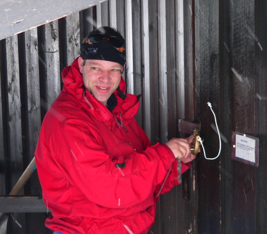 Wir machten uns gleich wieder voll an die Arbeit. Das WC-Häuschen musste freigeschaufelt werden, Holz musste gehackt und im Ofen Feuer gemacht werden. Sven und Moni kochten eine leckere Reispfanne mit Schinkenfleisch und Pfeffersoße. Hinterher macht Sven den Vorschlag, eine Dose Pfirsiche zum Nachtisch aus den Lagerbeständen der Hütte zu kaufen.. Da waren wir doch gleich einverstanden und jeder speiste zwei köstliche halbe Pfirsiche. Währenddessen hatte der Wind knappe Sturmstärke erreicht und heulte um die Hütte. Wir heizten ordentlich ein und lauschten nun bei Kerzenlicht unseren gegenseitigen Erzählungen von Abenteuern und Expeditionen, von Norwegen und Alaska.